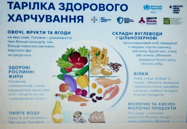 • тарілку здорового харчування та частку, яку в ній займають корисні рослинні олії;