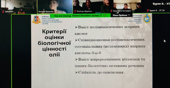 Гостьова лекція для здобувачів спеціальності «Харчові технології» на тему «Рослинні олії і жири для здорового харчування»