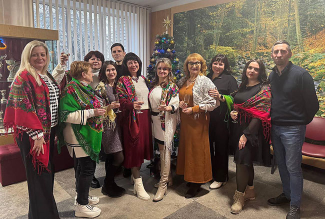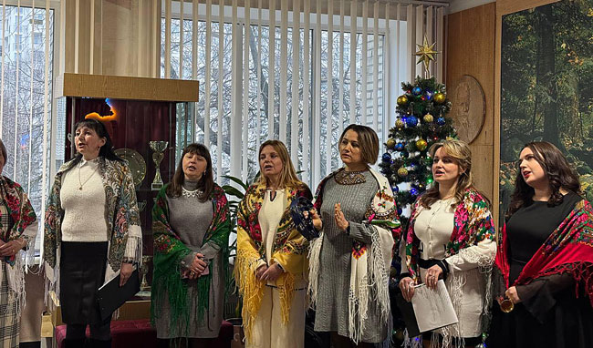На завершення адміністрація коледжу та педагогічний колектив у теплій, святковій атмосфері весело колядували, обмінювалися щирими побажаннями та зичили миру, здоров’я й успіхів у прийдешньому Новому році.