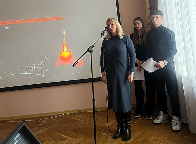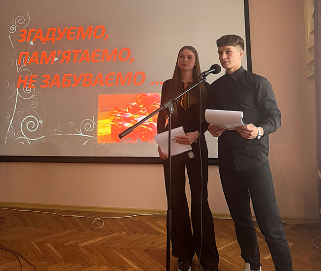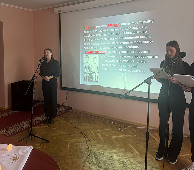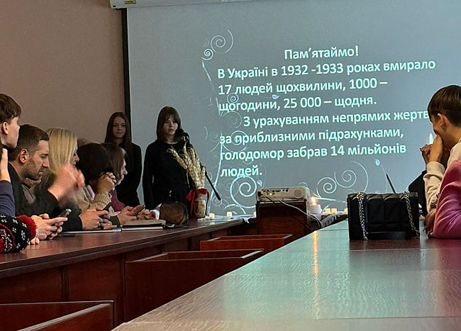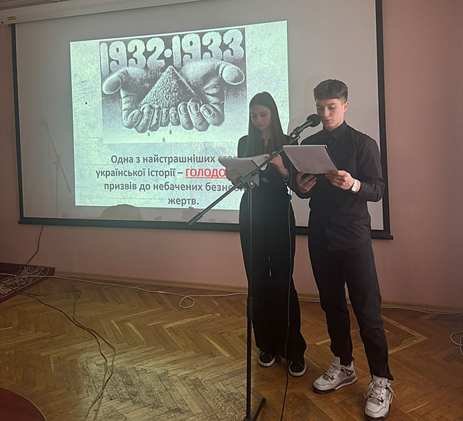 Під керівництвом заступника директора з виховної роботи, викладача укр. мови Олесі ЯРОШЕВСЬКОЇ та кандидата історичних наук, викладача історії України Оксани ШЕРЕМЕТИ студенти вшанували пам’ять мільйонів українців, безвинно загублених у 1932–1933 роках.