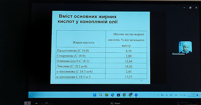 Спікером виступила Тамара Тихонівна Носенко, професор кафедри технології жирів, хімічних технологій харчових добавок та косметичних засобів Навчально-наукового інституту харчових технологій.