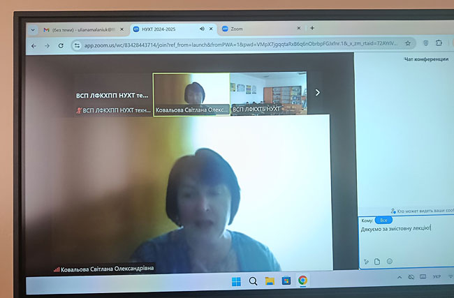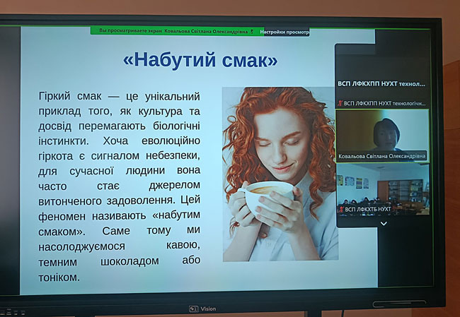 26 березня здобувачі освіти технологічного відділення прослухали гостьову лекцію на тему «Хімія смаку, запаху і кольору», яку провела кандидат хімічних наук, доцент Ковальова Світлана Олександрівна.