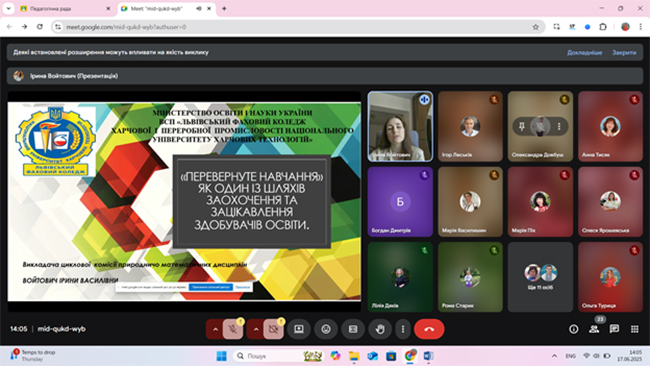 Першою була представлена доповідь “Перевернуте навчання” як один із шляхів заохочення та зацікавлення здобувачів освіти», яку підготувала Ірина ВОЙТОВИЧ, викладачка циклової комісії природничо-математичних дисциплін. У виступі було розкрито переваги моделі «flipped learning» для підвищення активності й самостійності студентів.