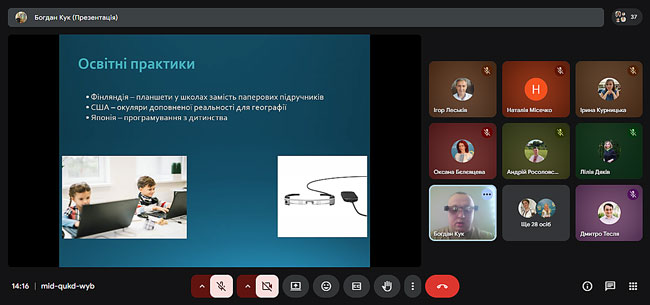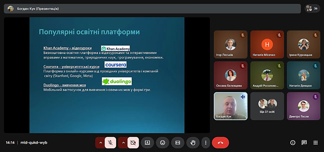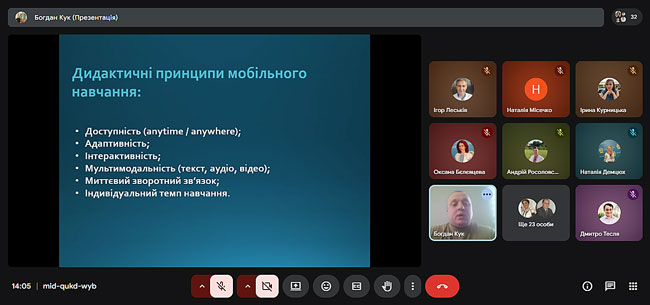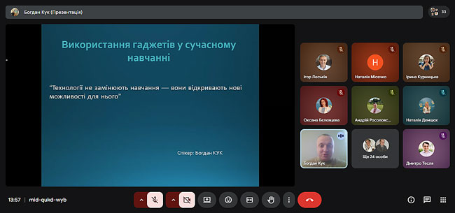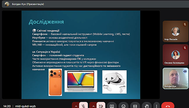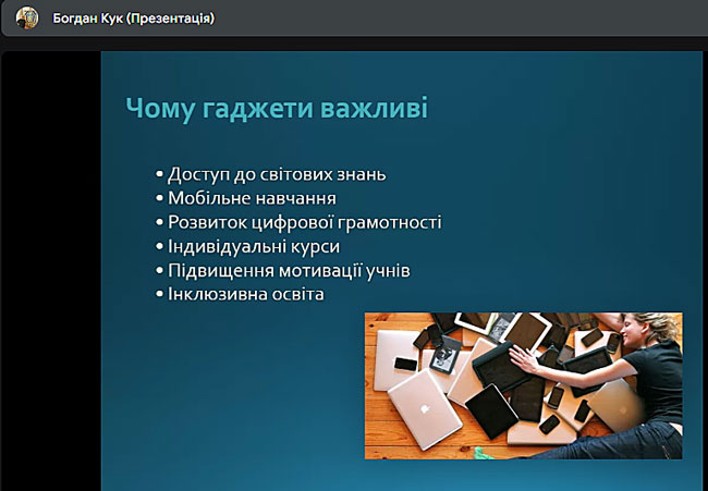 Доповідач Богдан Кук розкрив можливості застосування мобільних пристроїв у освітньому процесі, продемонстрував приклади освітніх застосунків та наголосив на доцільності використання гаджетів як засобу активізації пізнавальної діяльності студентів.